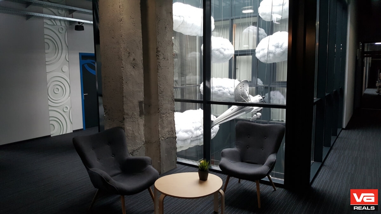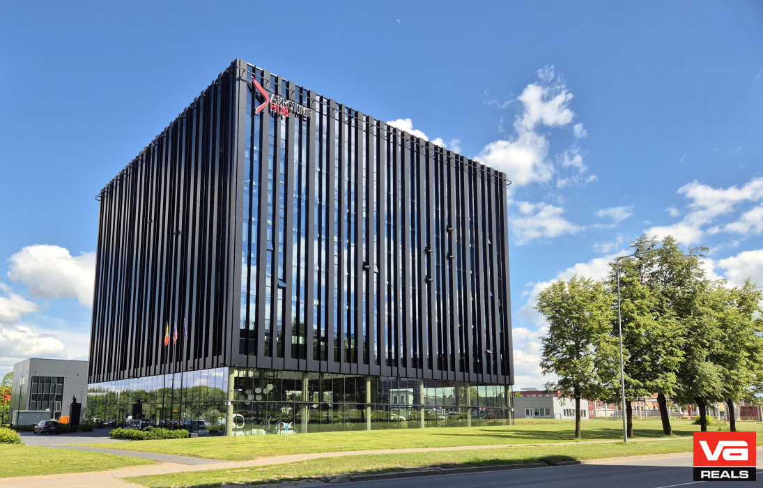 Užtikrindami aukščiausius statybos reikalavimų standartus „VA REALS” ekspertai bendradarbiaudami su statybų rangovais bei užsakovu, UAB „Aero City 1”, atliko naujo administracinio pastato statybos darbus. Aštuonių aukštų, kubo formos pastatas su dideliu artriumu, kurio centre patalpintas verslo klasės lėktuvas Bombardier CRJ 200. Tapome pirmieji, integravę orlaivį į kubo formos pastato konstrukciją, o šio išskirtinio projekto vystymą, trukusį vos pora metų, lydėjo daugybė inžinerinių iššūkių. Lėktuvas stovi pirmajame pastato aukšte, supamas stiklo sienų ir minimalistinės, lengvumo kupinos 8 metrų aukščio erdvės. Bendras pastato plotas 9530 kv.m , pirmame aukšte įsikūrė picerija su lauko terasa, o antrajame aukšte baras. Erdvės yra atviros Vilniaus miesto gyventojams ir svečiams.