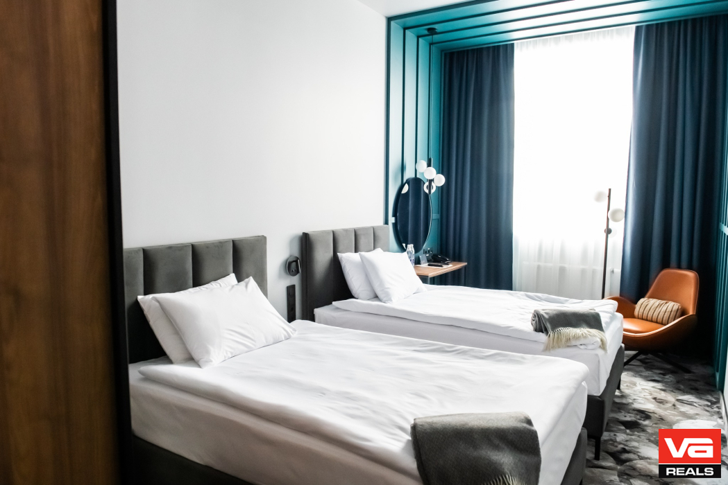 Užtikrindami aukščiausius statybos reikalavimų standartus, „VA REALS“ ekspertai bendradarbiaudami su statybų rangovais bei užsakovu, UAB „BAA Training“, atliko patalpų plėtros projektą, senose gamybinėse patalpose įrengiant viešbučio, restorano paskirties patalpas ir jas pritaikant Vilniaus miesto svečiams ir studijuojantiems aviacijos akademijoje studentams. Pastato bendras plotas  4015,70 m2, kuriame įrengti 105 viešbučio kambariai ir restoranas. Viešbučio statybos darbai užbaigti laiku 2017 metų  sausio menesį.