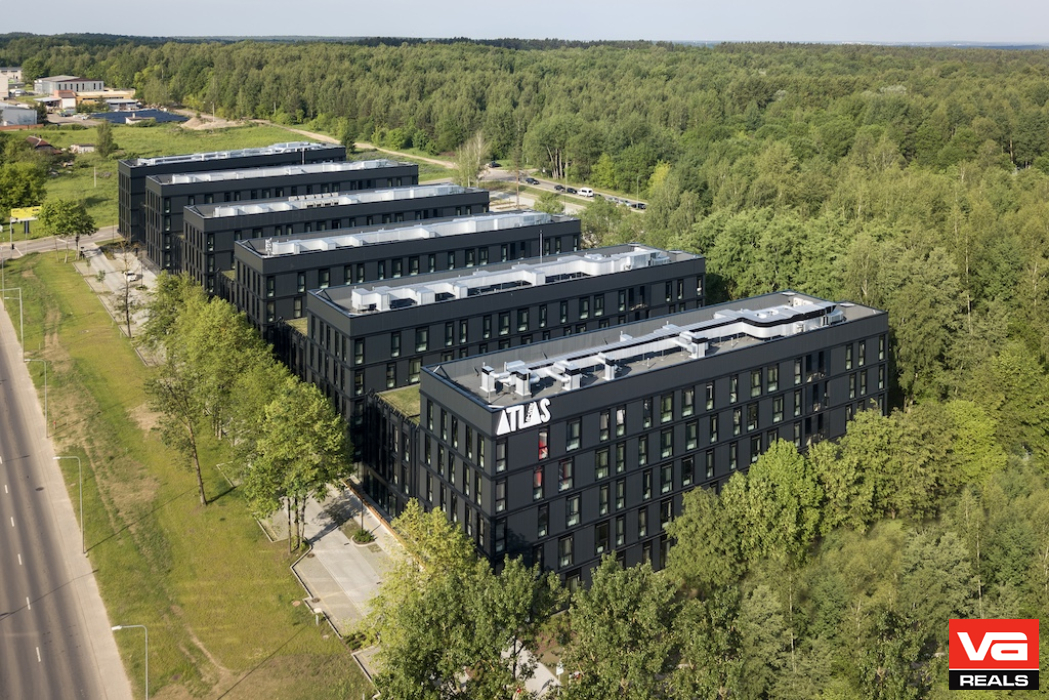 Pastatytas šešių korpusų, penkių aukštų, 517 kambarių pastatas, kuriame įsikūrė įvairaus dydžio modernūs apartamentai su virtuvėlėmis ir vonios kambariais. Atlas būstai yra šiek tiek didesni nei įprasti co-living tipo apartamentai. Korpusai sujungti horizontalia komunikacija, kurioje įsikūrė bendro naudojimo erdvės. Įrengta sporto salė, bendra atvira virtuvė, kino salė, žaidimo kambariai. Gyventojų patogumui yra skalbykla, sandėliavimo spintelių zona, automobilių parkavimo vietos. Tarp korpusų suformuoti jaukūs vidiniai kiemeliai su dekoratyviais želdiniais.